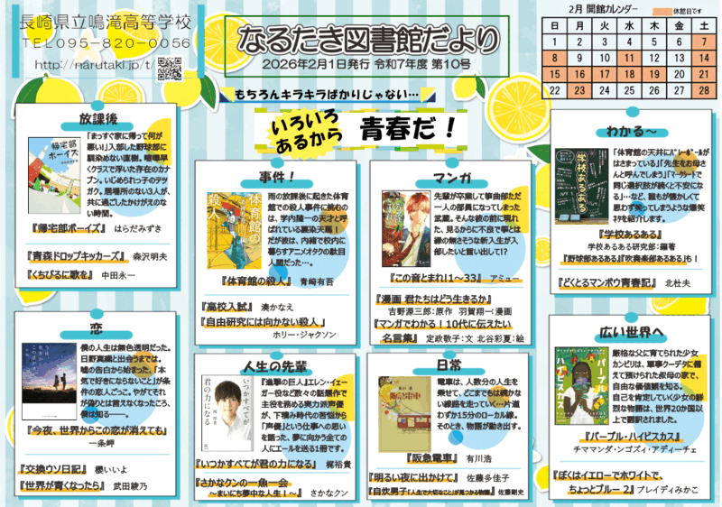 星2月は入試の関係で休館日が多くなっていますので、どうぞご注意ください。